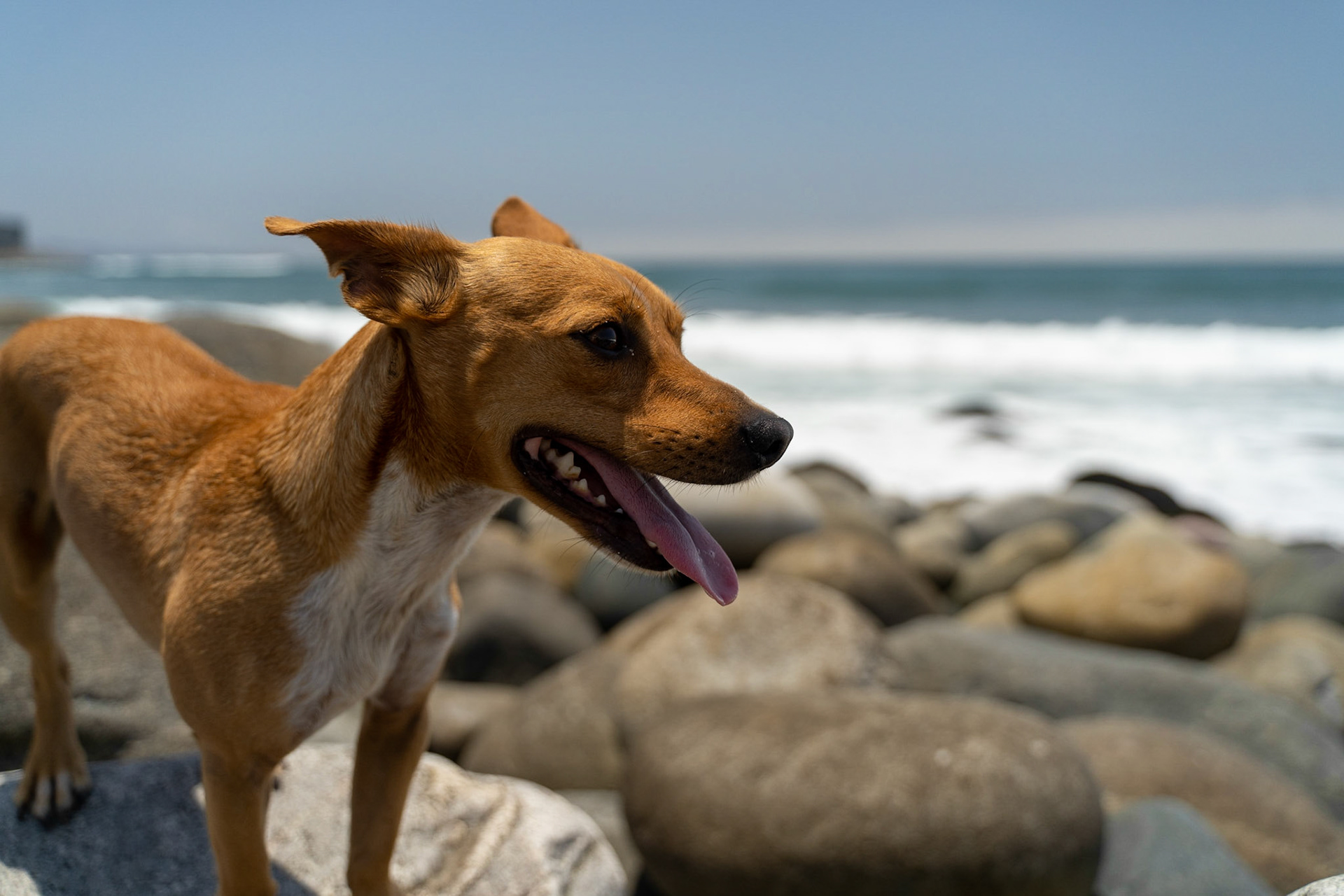 Mr. Bombastik poses for the camera while running along the beach, chasing birds, and being his very-fantastik self.